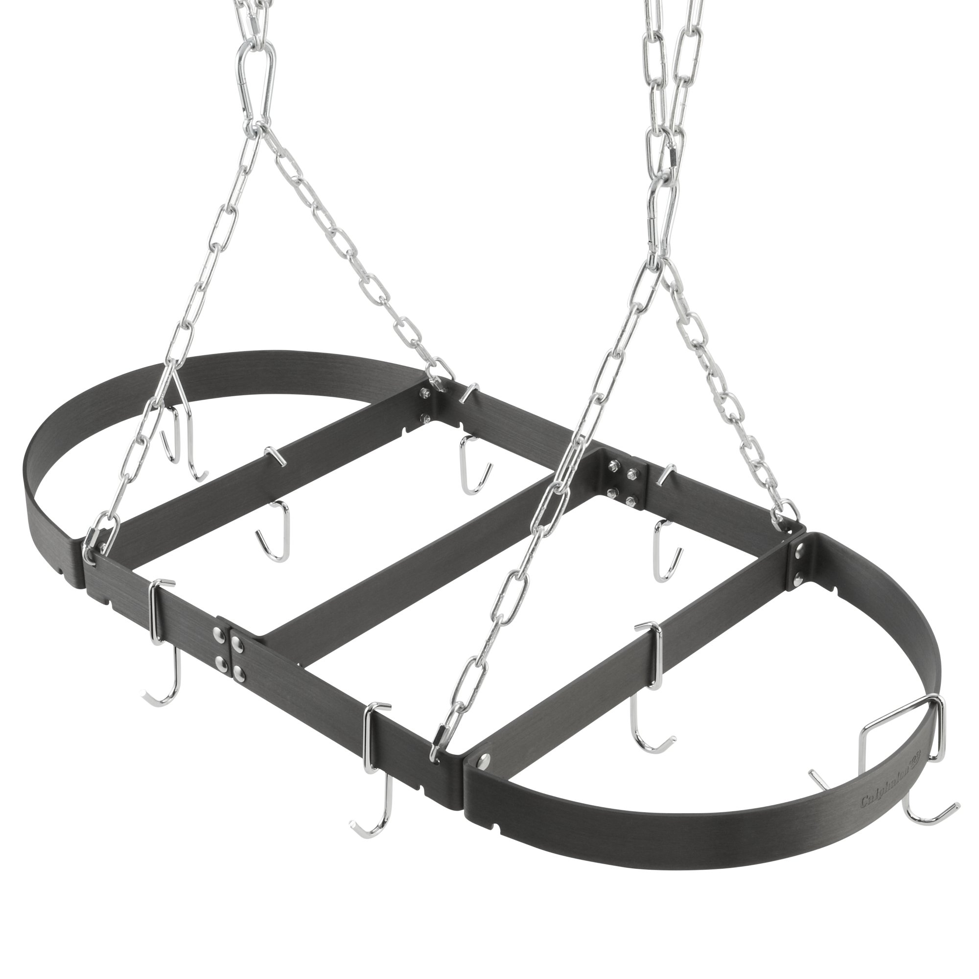 Stainless steel 18 x 36 oval pot rack includes 15 in. Our premier classic signature and simply calphalon cookware collections are available in a variety of materials and finishes including stainless steel and. The 30 straight rack is made from the same hard anodized aluminum as our cookware and includes 4 single hooks. Hanging chains with quick four link connectors 6 single hooks and 2 double hooks.