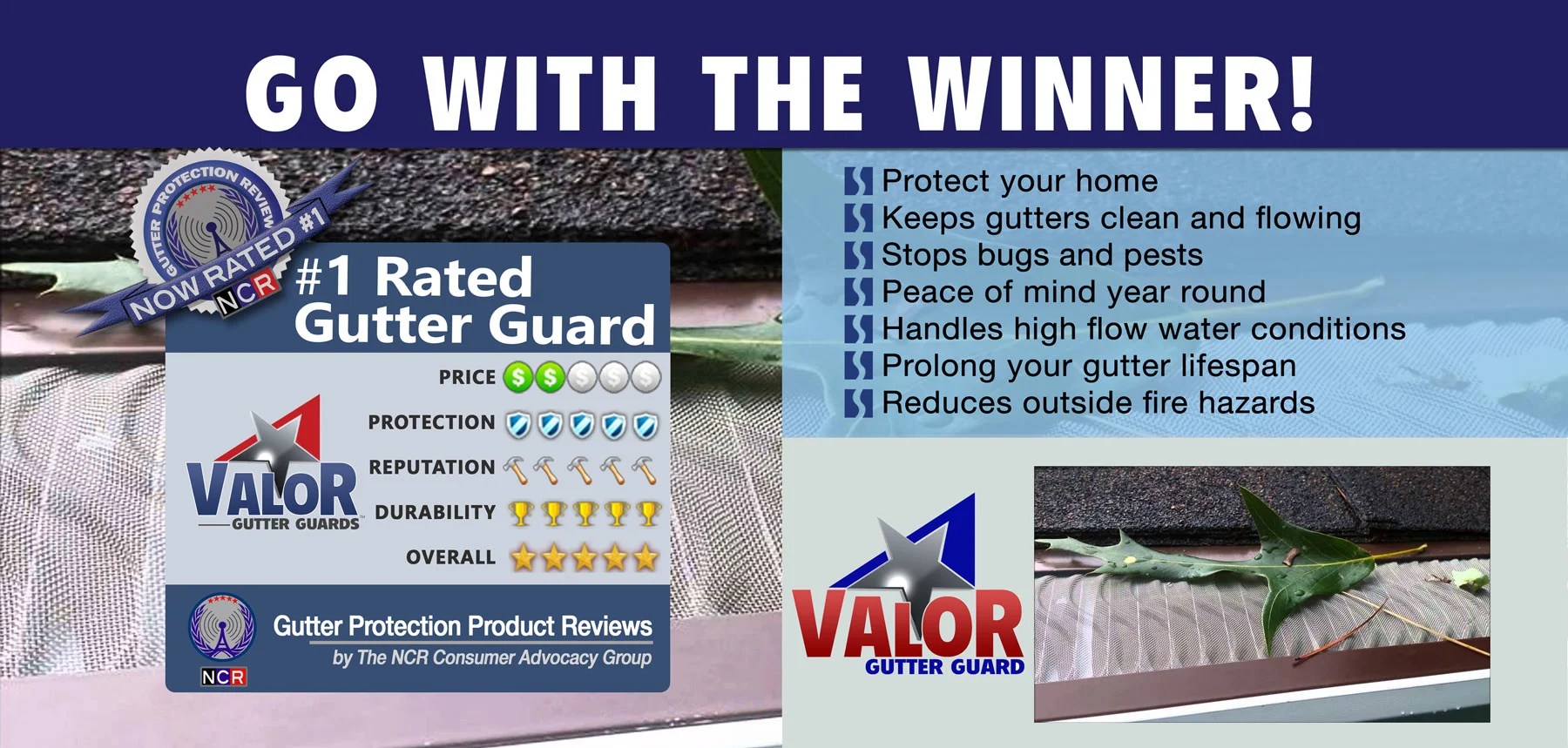 The valor gutter guards fit many different gutter inside widths. What sets them apart from the rest is its raised s curved design stainless steel mesh and other unique features melt away or moss away. Ncr consumer advocacy group is the largest publisher of independent 3rd party testing ratings and reviews for the gutter cover and home improvement industry. Standing guard against clogged gutters america s 1 gutter guard prevents water damage to both the fascia board and foundation.